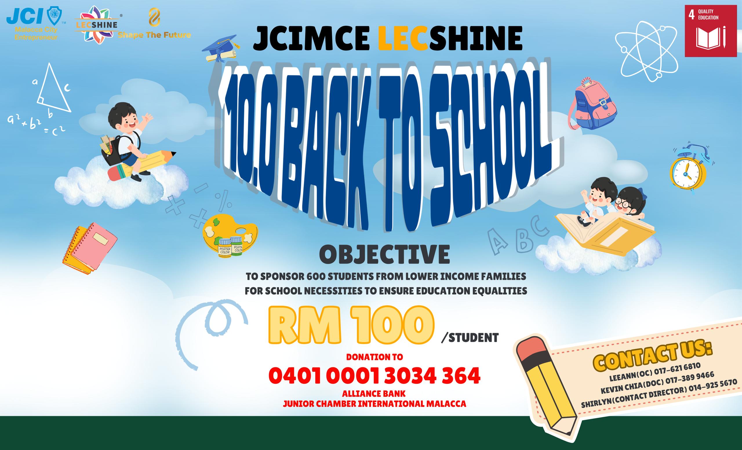 Every RM100 you donated will be given to a under privilege students.