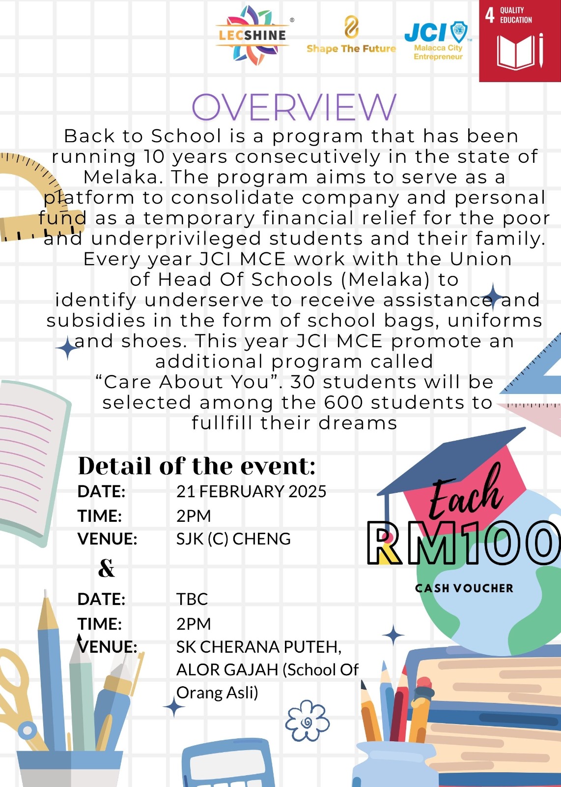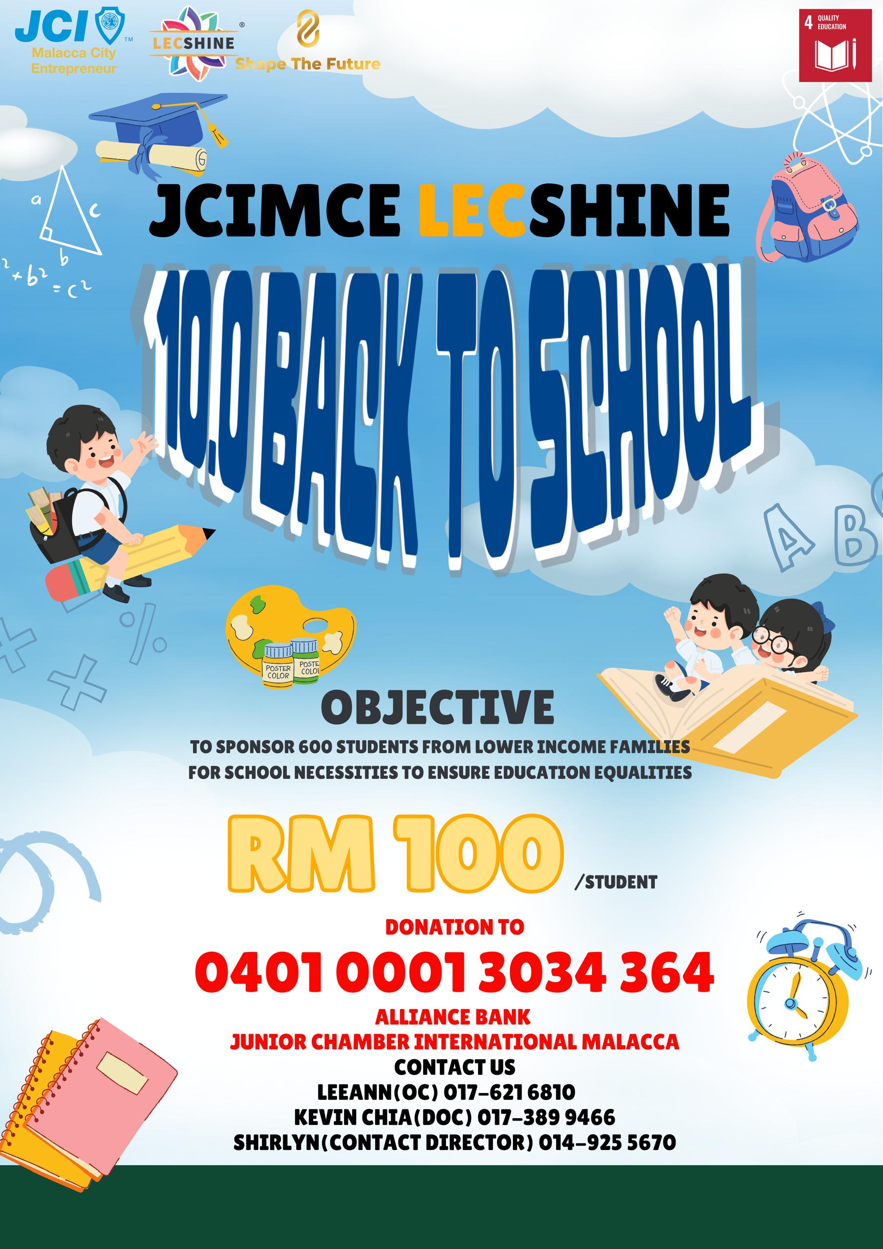 Every RM100 you donated will be given to a under pervilage students.